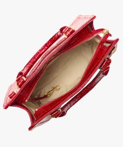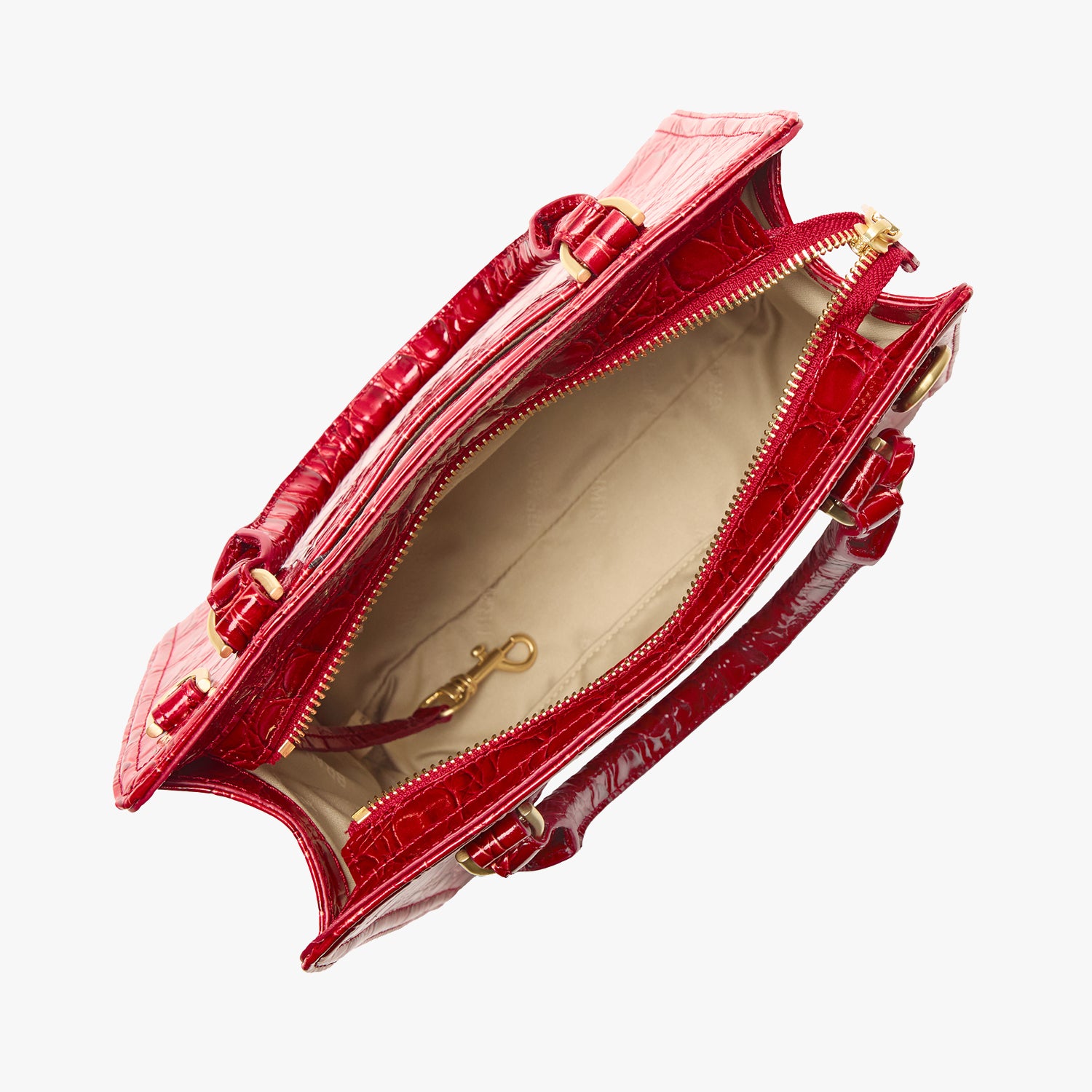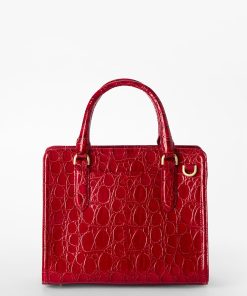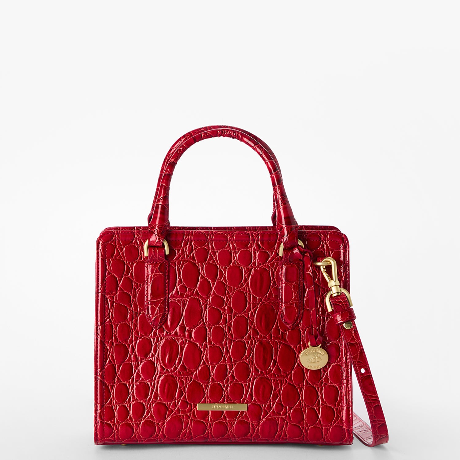 Featured in Sriracha Vanderbilt, a sophisticated new croc texture in a spicy new red for summer. This croc embossed leather features a rounded texture reminiscent of vintage crocodile handbags for a luxe look. The statement square metal buckle brings added sophistication to the overall collection. A hot hue in statement Sriracha is perfect for warmer weather. Made with genuine leather.