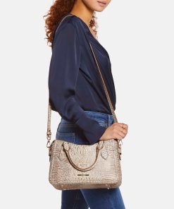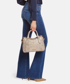 Micaela in our Alden Road leather, a lightweight, soft iteration of our iconic croc-embossed leather with casual construction that appeals to your softer side. Micaela features an adjustable strap that allows you to wear this a crossbody for maximum versatility. The rolled handles allow for comfort while carrying and bottom feet prevent scuffing.