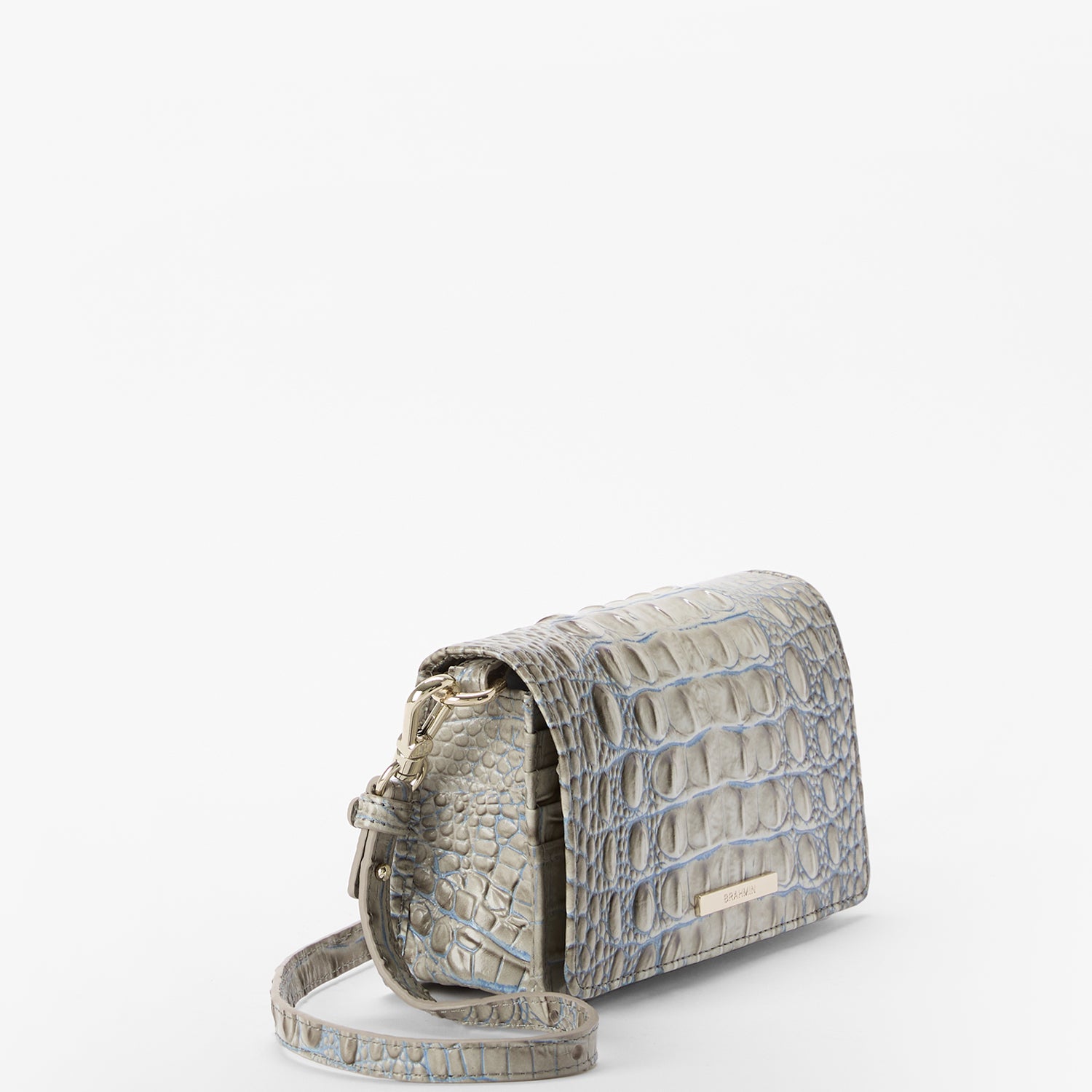 Featured in Mindful Grey Ombre Melbourne, a dimensional neutral grey. This combination of cool blues and neutrals is perfect for everyday elegance. Made with genuine leather.