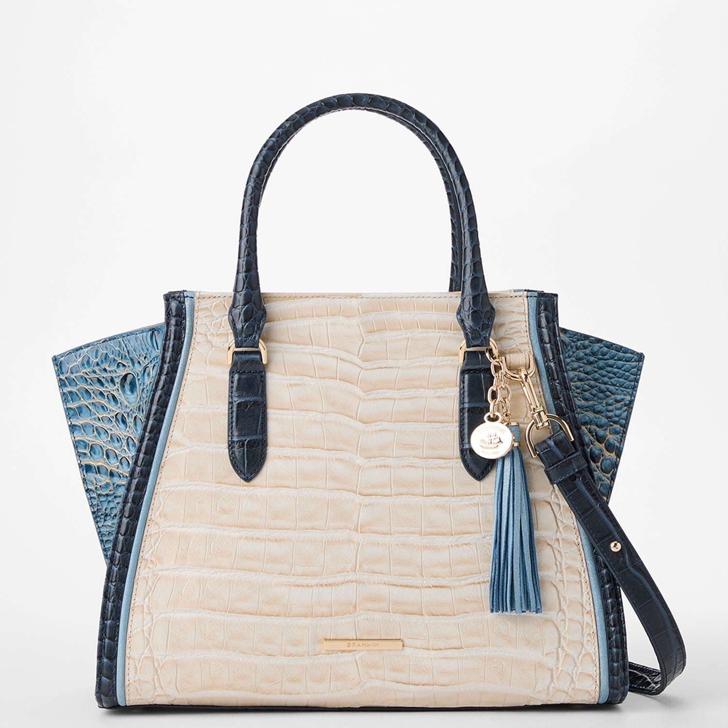 The Priscilla Satchel is a chic style with a geometric edge. Make a style statement while carrying your every essential.