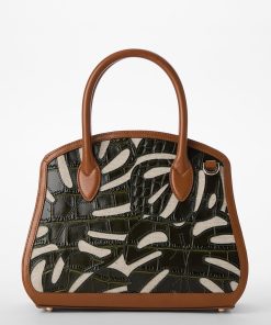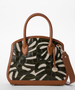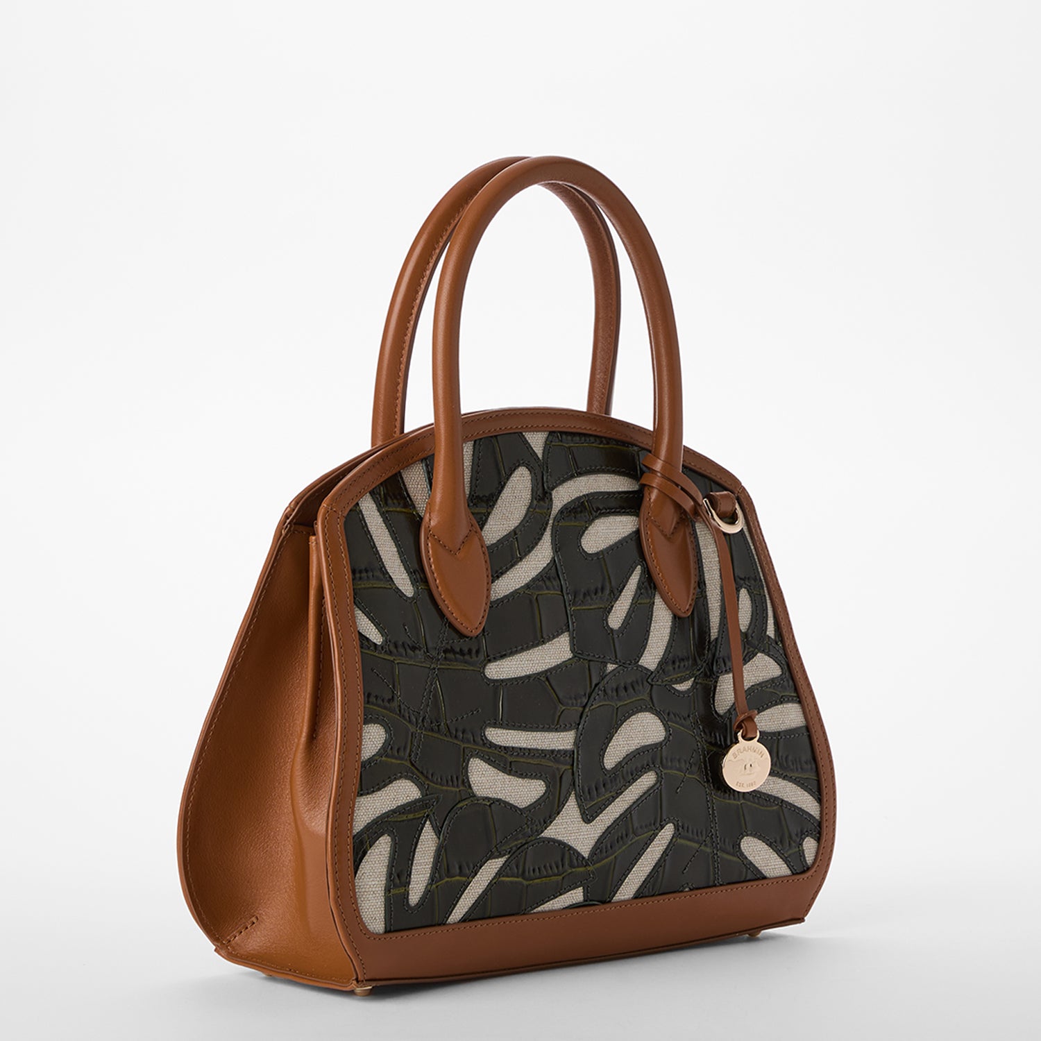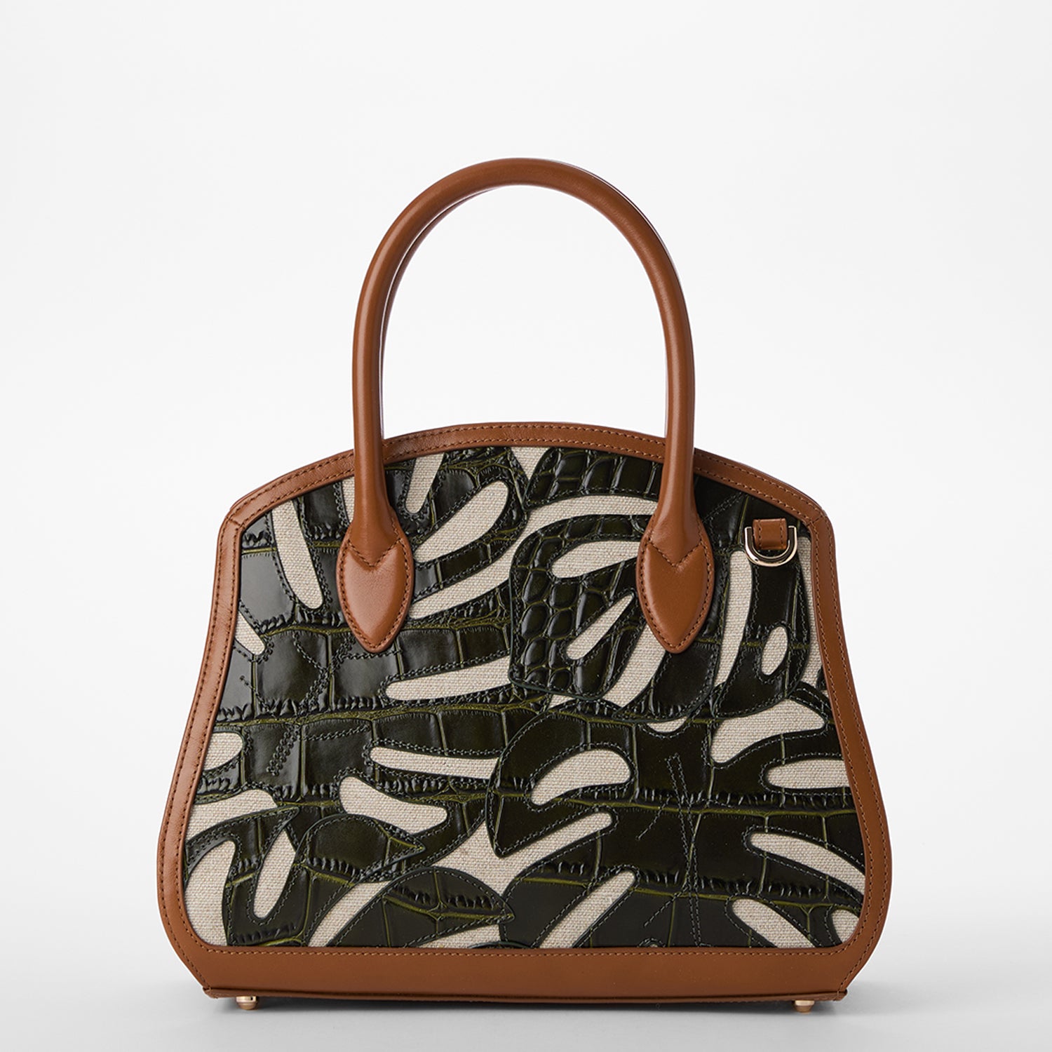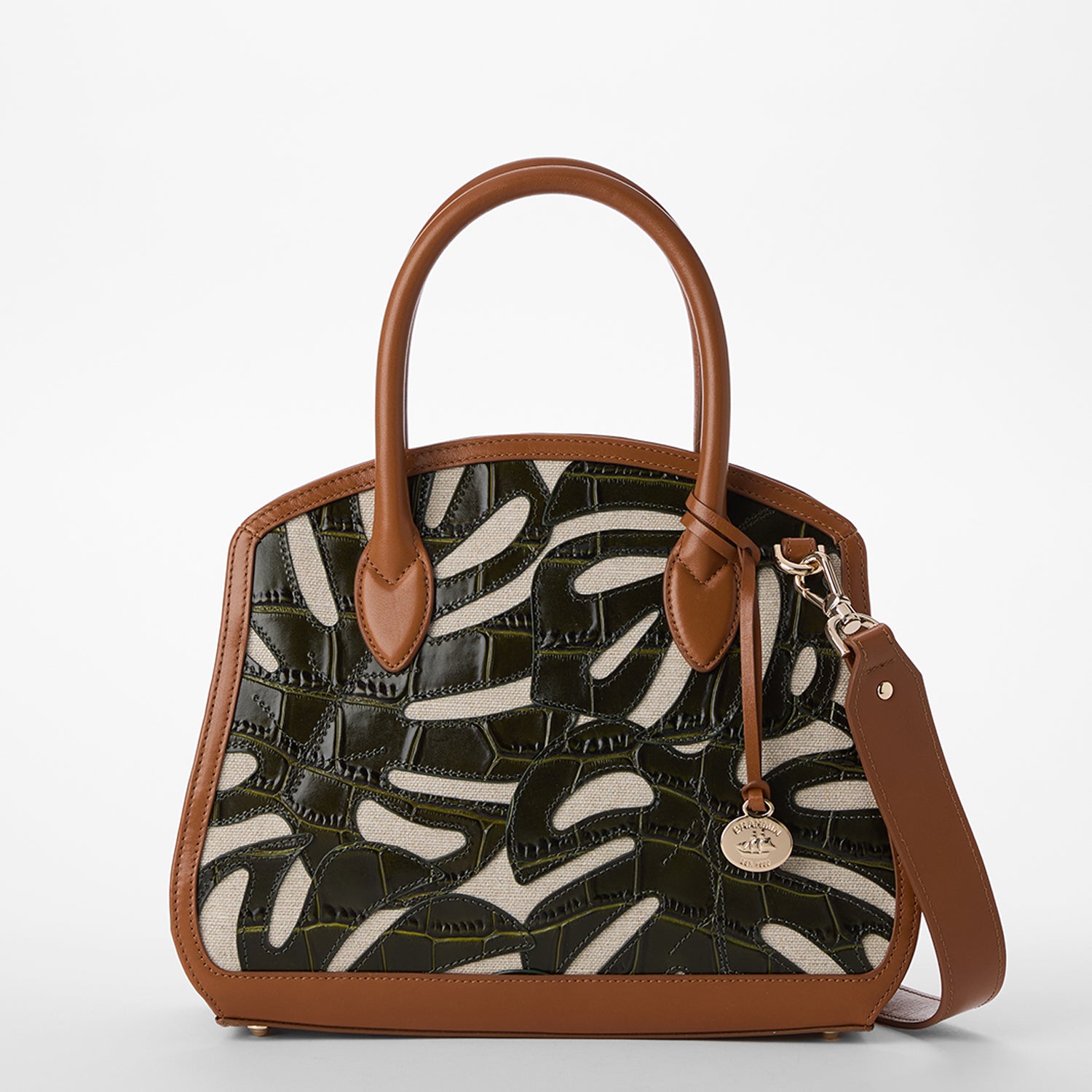 Featured in Cacti Green Abrigado, a bold botanical print in a blend of wearable greens. This novelty collection features cut out botanical leaves in a deep green flat croc on a neutral soft linen backing. A smooth leather trim in a warm tobacco lends versatility to the collection. The details showcase our commitment to craftsmanship and the color palette is rich and easy to style. Made with genuine leather.