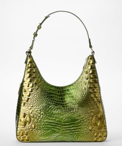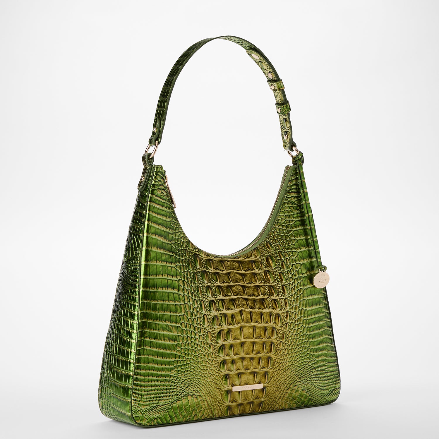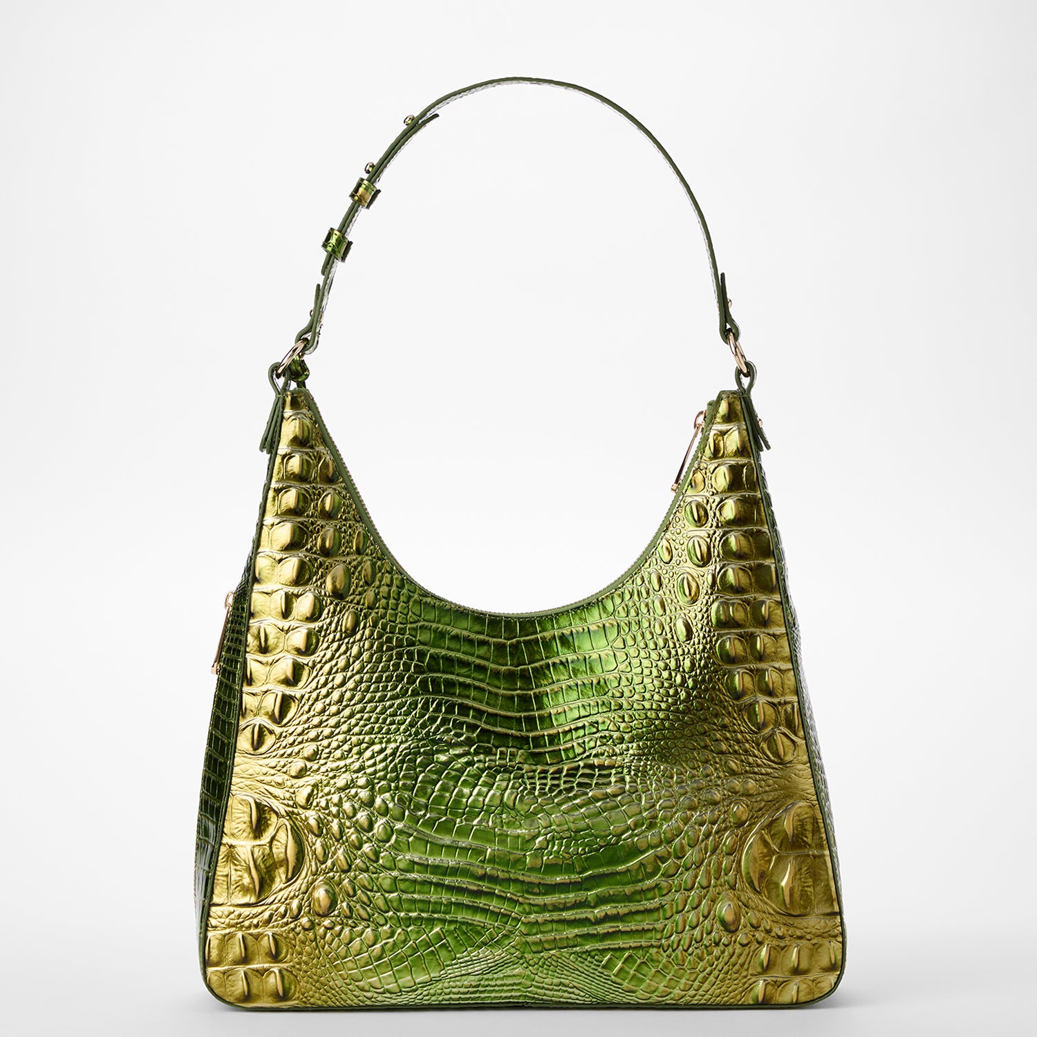 Featured in Cacti Green Melbourne, a tonal metallic olive green. This dimensional green is inspired by the lush paradise of the American desert. The metallic shines through, giving this an eye-catching element that feels perfect for warmer weather. Made with genuine leather.