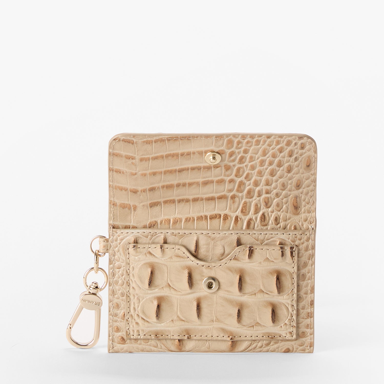Ricki in our Alden Road leather, a lightweight, soft iteration of our iconic croc-embossed leather with casual construction that appeals to your softer side. Your go-to clip on card case that can be carried solo or clipped on to your favorite Brahmin handbags. The snap closure is easy to use, and the slim main compartment can store multiple credit cards and small essentials. The front slip pocket is the perfect place for your ID.