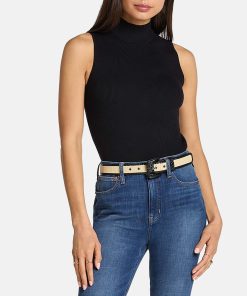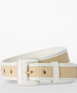BRAHMIN Women’s Wide Covered Leather Buckle Belt | Sea Salt White Classic Vintage Croc